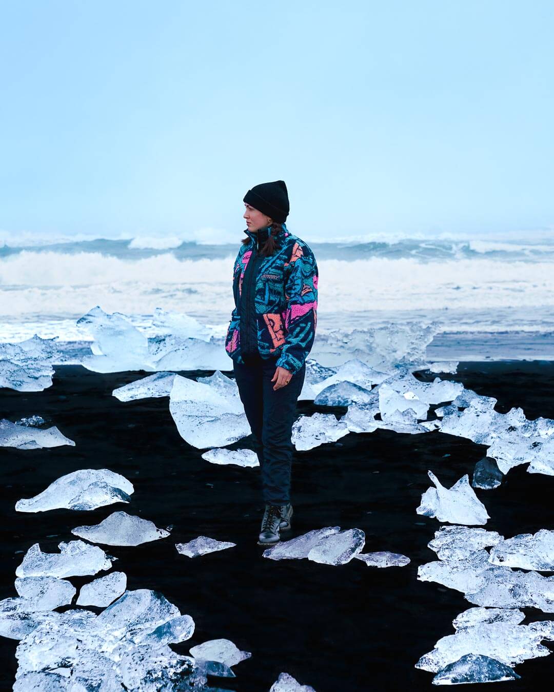 Diamond Beach, a must-see when visiting South Iceland. Visit early in the morning as the beach gets extremely busy with tourists throughout the day. Also, if it rains, the ice will be melted away so plan accordingly! Parking is paid via parka app.